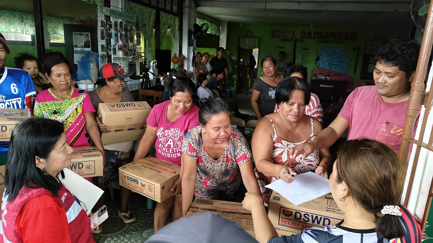 Ilan sa mga nahatiran ng tulong ay ang 300 pamilya sa Barangay Tabigue, Boac kung saan marami sa tahanan ng mga residente roon ay binaha matapos na umapaw ang tubig mula sa Boac River sa kasagsagan ng Bagyong Rolly.